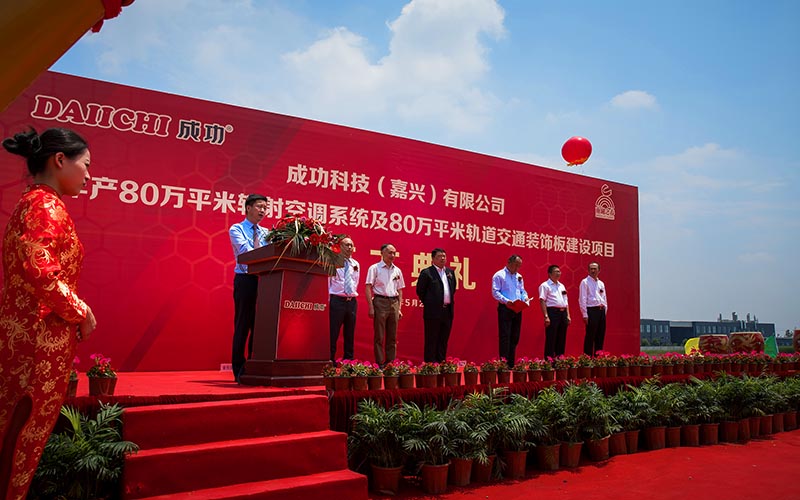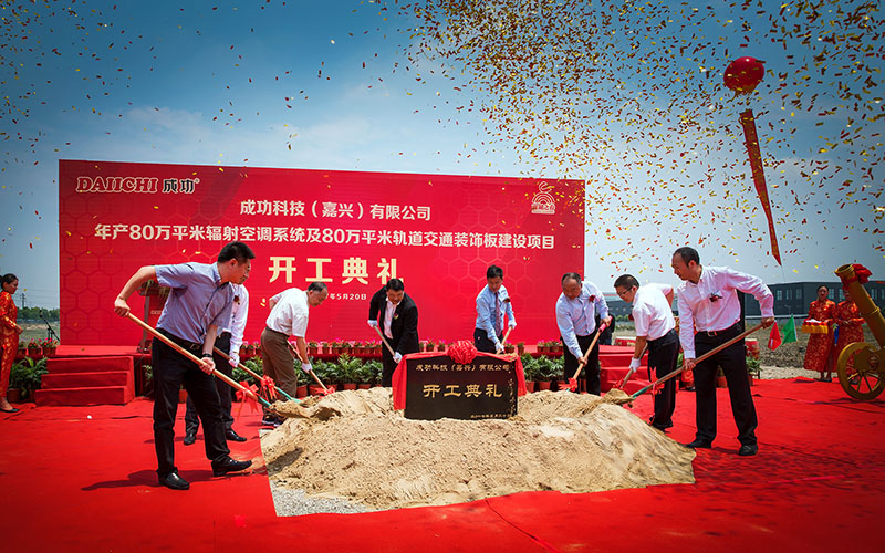 5月20日,丰丽集团作为金属建筑产品·解决方案供应商,将目光聚焦在日益增长的金属内饰需求上,在嘉兴南湖之滨斥资数亿元拟将打造一个年产80万方的制造基地-成功科技;并配置多条进口全自动生产流水线。开工仪式期间,董事长表态, 成功科技将本着“科学务实,精益求精”的态度,高质量、高效率的完成此次建设,并将此理念应用到以后的生产中去,公司将以上海技术研发团队为核心,充分发挥国际化城市的信息、人才、科技等资源,优化管理,配置资源,以更加科学的管理办法保障生产配送、售后等高效率高品质的执行。